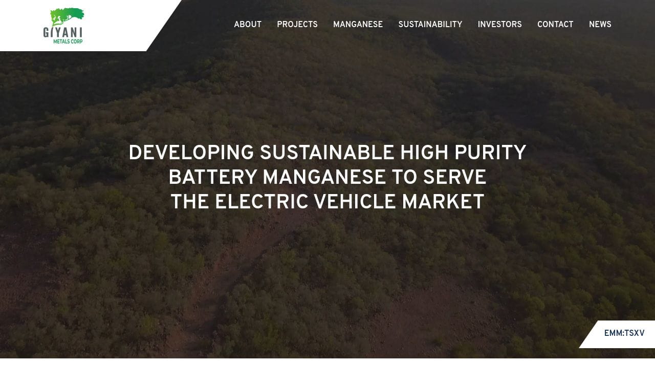 Giyani Metals Corp is a Canadian-based exploration and development company focused on the development of high-grade manganese deposits in Botswana. The company's flagship project is the K.Hill manganese deposit, which is located in the Kanye Basin, approximately 85 km southeast of the capital city of Gaborone. The K.Hill deposit is estimated to contain 1.1 million tonnes of high-grade manganese ore, with an average grade of 45.5% manganese. Giyani Metals Corp is committed to developing the K.Hill deposit in an environmentally responsible manner, and has engaged with local communities and stakeholders to ensure that the project benefits the local economy and creates sustainable employment opportunities.