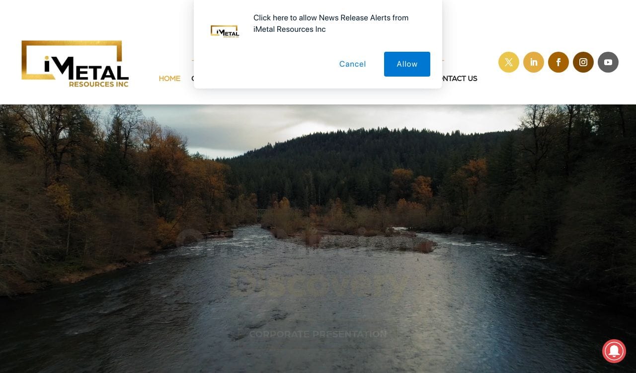 iMetal Resources Inc. is a Canadian mineral exploration company that focuses on the exploration and development of precious and base metals in Canada. The company's primary focus is on its Gowganda West project, which is located in the Abitibi Greenstone Belt in Ontario. The project covers an area of approximately 105 square kilometers and is located near several past-producing mines. iMetal Resources also has a portfolio of other exploration projects in Ontario and Quebec, including the Oakes and Ghost Mountain projects. The company's goal is to discover and develop high-quality mineral deposits that can be economically mined and processed.