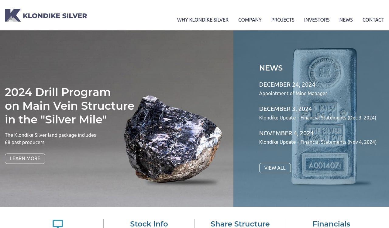 Klondike Silver Corp is a Canadian mineral exploration company that focuses on the exploration and development of silver and zinc deposits in British Columbia, Canada. The company's flagship property is the Silvana Mine, which is located in the Slocan Mining District of southeastern British Columbia. The Silvana Mine was a historic silver producer that operated from the late 1800s to the early 1900s, and Klondike Silver Corp is currently exploring the property for additional silver and zinc mineralization. The company also has several other exploration properties in British Columbia, including the Sandon Property and the Trout Lake Property. Klondike Silver Corp is listed on the TSX Venture Exchange under the symbol KS.