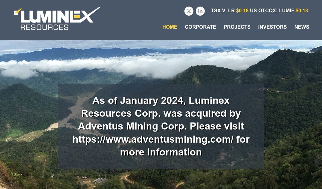 Luminex Resources Corp is a Canadian mineral exploration company that focuses on the discovery and development of gold and copper deposits in Ecuador. The company was founded in 2018 and is headquartered in Vancouver, British Columbia.