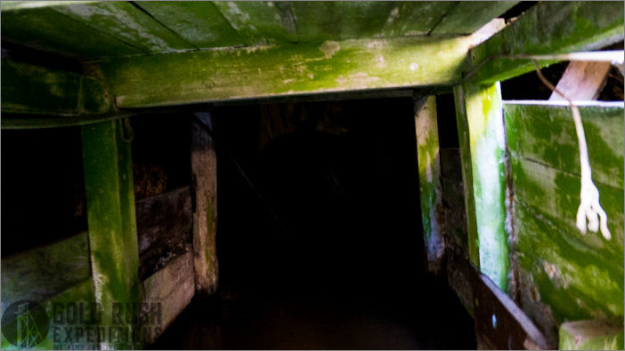 The main drift is open and accessible but contains a few inches of water from blockages at the front of the mine. The timbers are rotted and collapsed, but as noted in the older reports, the walls are solid and stable. The entire workings have not been fully mapped since 1983 and the conditions are overall unknown.