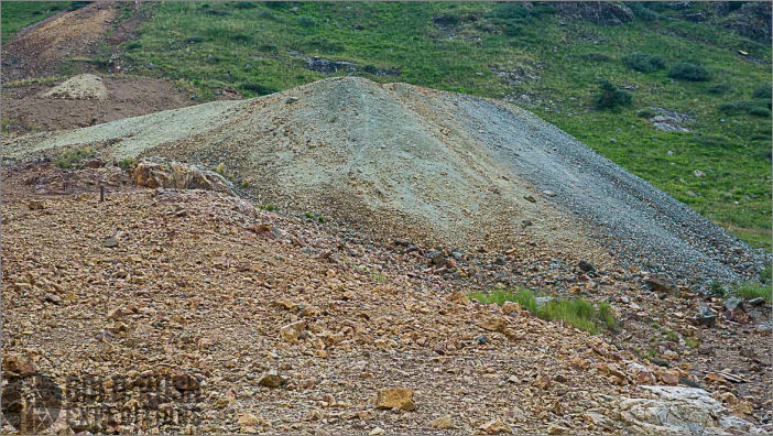 There are multiple waste dumps on the property. The primary dump which was measured is 108’ x 134’ x 30’ equating to 434,160 cubic feet, or 37,989 tons of material. Surveyors were unable to access the adit due to a Colorado Division of Reclamation gate so grab samples were taken from the dump.