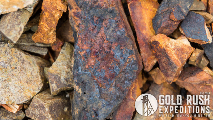 Gold assays were widely varied from 2.1oz per ton to trace. Average assay value across the dumps was 0.148 oz. per ton. Copper values averaged 3.7%, with some spikes as high as 19%. Silver values varied from 24oz per ton to no content at all. Average Silver assay was 0.104 oz. per ton. The dump material indicates the material is highly oxidized, there was no pyrite noted in the material. Dumps were measured and individually assayed using grab samples gathered by surveyors.