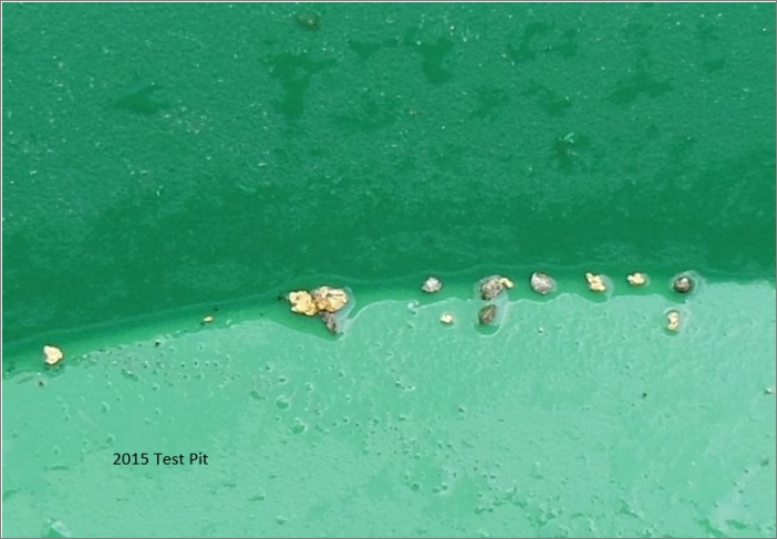 Test pits, drilling and geophysical surveys have shown that the creek has from 6 to 9 feet of gravel and 10 to 12 feet of muck, mostly frozen but thawed near the creek. Unworn, hackly gold grains have been encountered from top to bottom in the gravel section.
