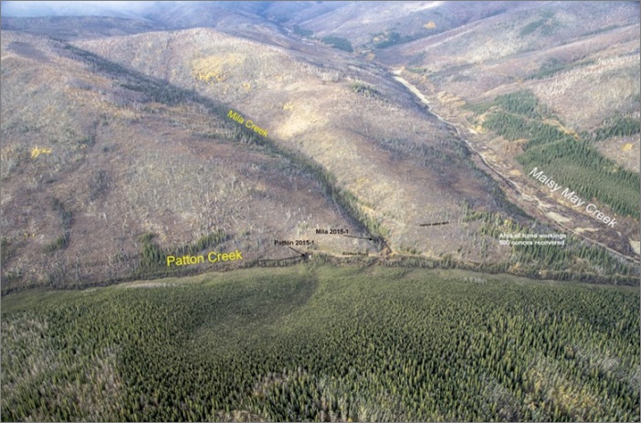 The central part of Maisy May Creek, which is adjacent to Patton Creek, is a historic producer with over 25,000 ounces of placer gold recorded. Most of the mining was done by Queenstake Resources Ltd.