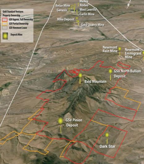 Gold Standard Ventures GSV is an advanced stage gold exploration company focused on a district scale discovery on it's Railroad-Pinion gold project in Nevada's Carlin Trend. The Project is located at the southeast end of the Carlin Trend, a northwest alignment of sedimentary rock hosted gold deposits that hosts some of the world's largest gold mines. More than 40 separate gold deposits have been delineated along the Carlin Trend since the 1960's and those estimates of reserves are around 100 million ounces.