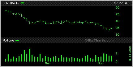 In 2012 Semafo produced 236,000 oz of gold and the company can produce gold for between $800-$850 per oz. The company has zero debt and in March of 2013 had $137 million in cash on hand. There is around 270 million shares O/S. The great thing about this company that I like is that the stock trading volume is higher than most equities with the average volume being 1 million plus per day. Also when running a Vector Vest scan, the stock ranks right up with the best of them for safety value and timing. One of the biggest issues these day with so many small miners is the lack of liquidity with the stock. There is nothing worse than holding a stock that just doesn't trade or holding a stock that you can't sell.