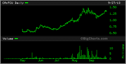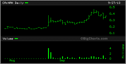 Zenyatta ZEN had a an up down week. Yesterday the stock rallied back 12% from the day before. There are a lot of short postions on this stock. Also, Canada Carbon CCB was quite active. Almost 2 million shares trading on Friday as the stock rallied back up 9%.