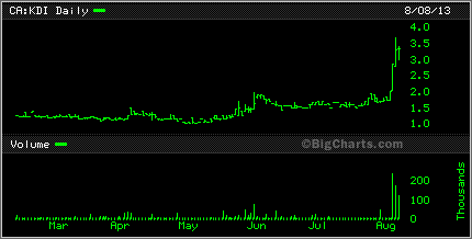 For anyone who thinks that the junior mining sector is dead, I got a few charts to show that they are dead wrong. Take a peek at the following two charts. The first being Kennady Diamonds KDI that had found some encouraging results and the second is from Rainmaker Mining RMG who has agreed to purchase up to 75% of some property in Arizona.