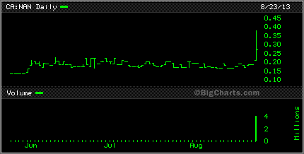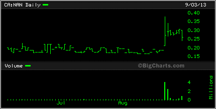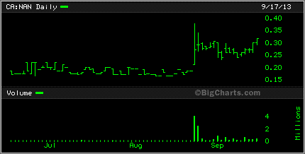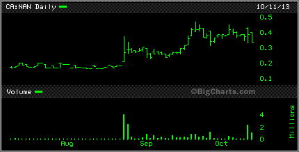 The chart above is just a 3 month chart and that chart is pretty much what a 12 month chart looked like until Friday. Of course with news like it was the stock opened at 21 cents then popped big time and shot up to 37 cents and finished the day off at 27 cents with over 4 millions shares trading hands. I did up a short video of NAN last year in November telling everyone about this project. You can see it below.