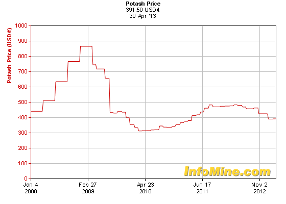 Looking at the chart of potash over the past 5 years you can get a glimpse of where it has traded. With little volatility in potash prices it makes budgeting a bit easier for potash explorers and there can be better stability in the share prices although the share prices can swing a lot just like the rest of the junior explorers. As long as people need to eat there will be a need for fertilizers and with population growing every year that need becomes that much greater. Fertilizer! That's food for thought.