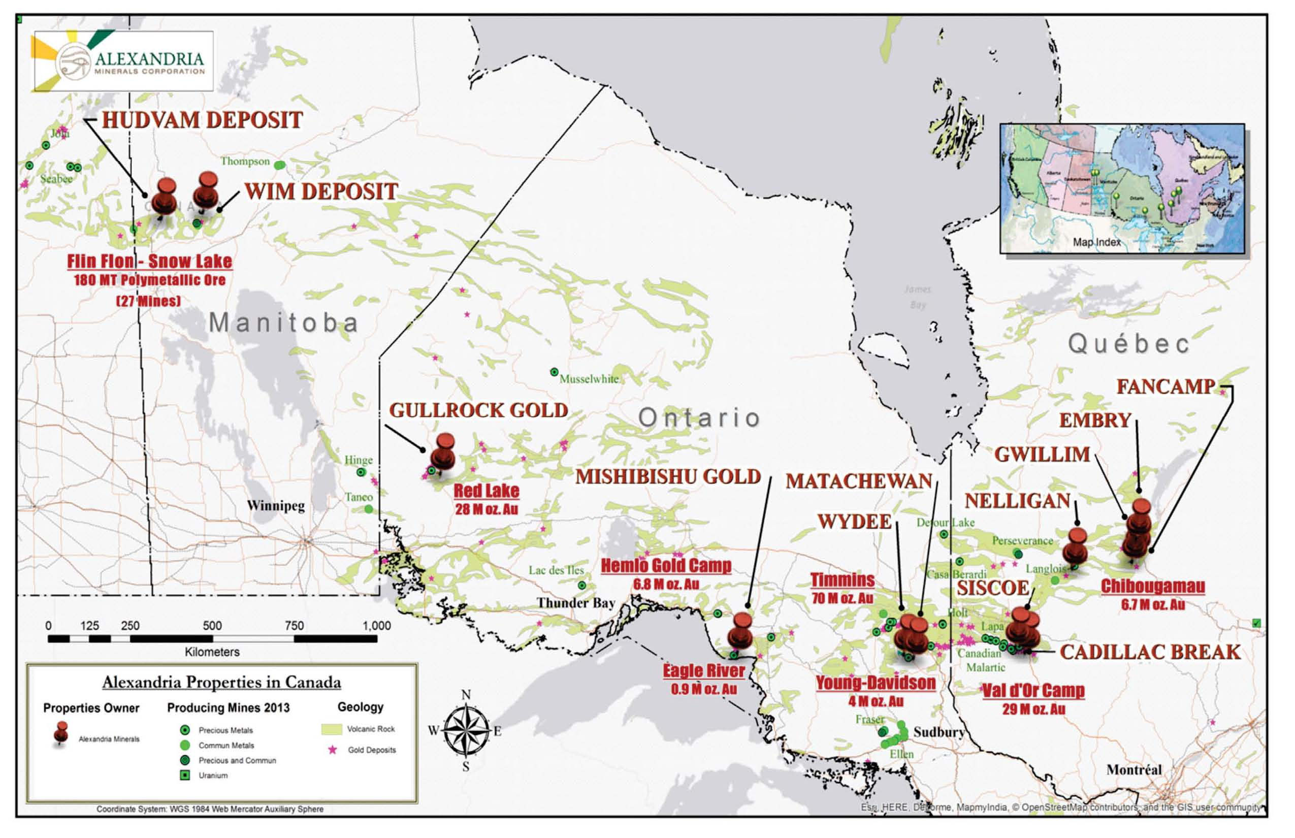 Another small explorer that is active in this region is Alexandria Minerals AZX. Although the company has property all across three provinces, the bulk of it's activity is focused along the 35 kilometer-long Cadillac Break Property Package in Val d'Or, Quebec, on which it has been conducting diligent and continuous exploration activities since 2007, successfully discovering resources over 2 million ounces of gold.
