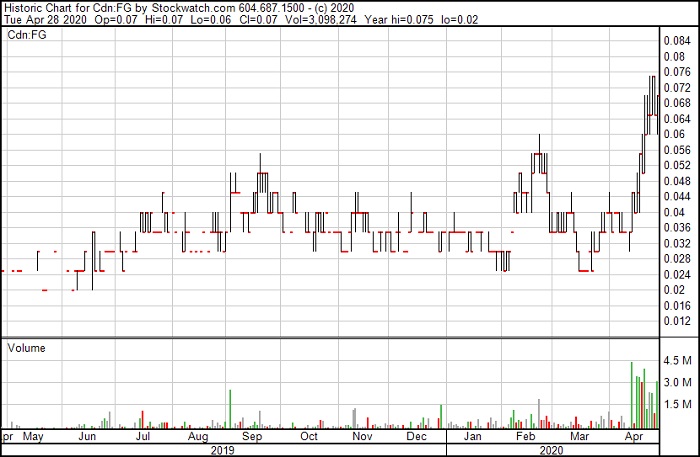 The company is currently preparing an additional six drill pads along strike of the mineralized zone to further test the extents of mineralization and that a total of 344 samples have been collected for gold assay from the drill core. Earlier in the week the company also issued news that they had acquired two additional patented claims blocks that lie along strike of Falcon's Central Canada claims. These claims cover 8,400 metres of strike length of mineralized magnetite-sulphide lenses varying from less than 10 to greater than 40 metres in width.