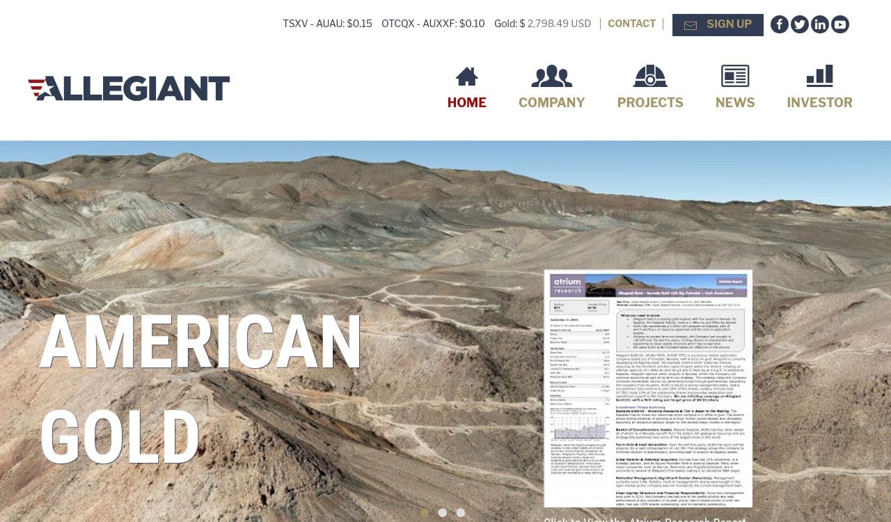 Allegiant Gold Ltd is a Canadian-based exploration and development company focused on the discovery and development of gold deposits in North America. The company's primary focus is on the exploration and development of its flagship Eastside project in Nevada, which is located in an established gold mining district and has significant potential for the discovery of additional gold deposits. Allegiant Gold also has a portfolio of other exploration projects in Nevada, as well as in Arizona and New Mexico. The company's management team has extensive experience in the mining industry and a proven track record of success in exploration and development. Allegiant Gold is listed on the TSX Venture Exchange under the symbol AUAU.