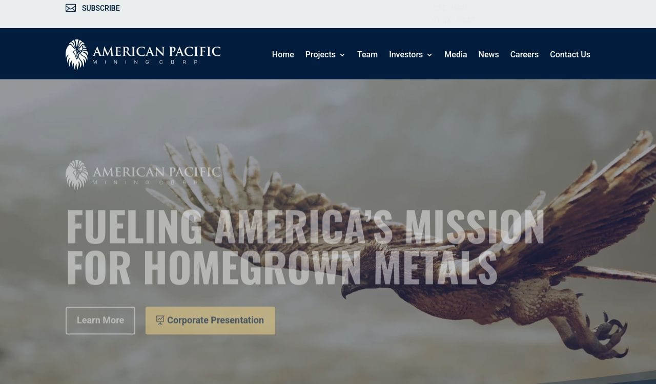 American Pacific Mining Corp is a Canadian-based exploration and development company focused on precious metals projects in the Western United States. The company's flagship project is the Tuscarora Gold Project in Nevada, which has a historic resource estimate of 1.5 million ounces of gold. American Pacific Mining Corp also has several other exploration projects in Nevada and Colorado, including the Madison Copper Gold Project and the Gooseberry Gold-Silver Project. The company's goal is to become a leading gold producer in the Western United States by advancing its projects through exploration, development, and strategic partnerships.