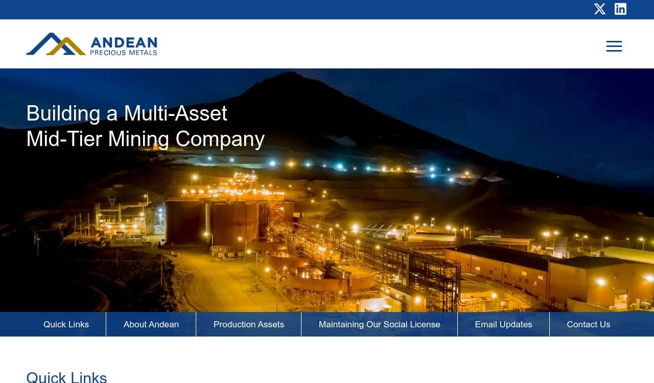 Andean Precious Metals Corp. is a Canadian-based mining company that focuses on the exploration and development of precious metal deposits in South America. The company's primary focus is on gold and silver deposits, with a particular emphasis on the exploration and development of high-grade deposits in Peru. Andean Precious Metals Corp. is committed to responsible mining practices and works closely with local communities to ensure that its operations have a positive impact on the environment and the people who live in the areas where it operates. The company is listed on the Toronto Stock Exchange under the symbol "APM".