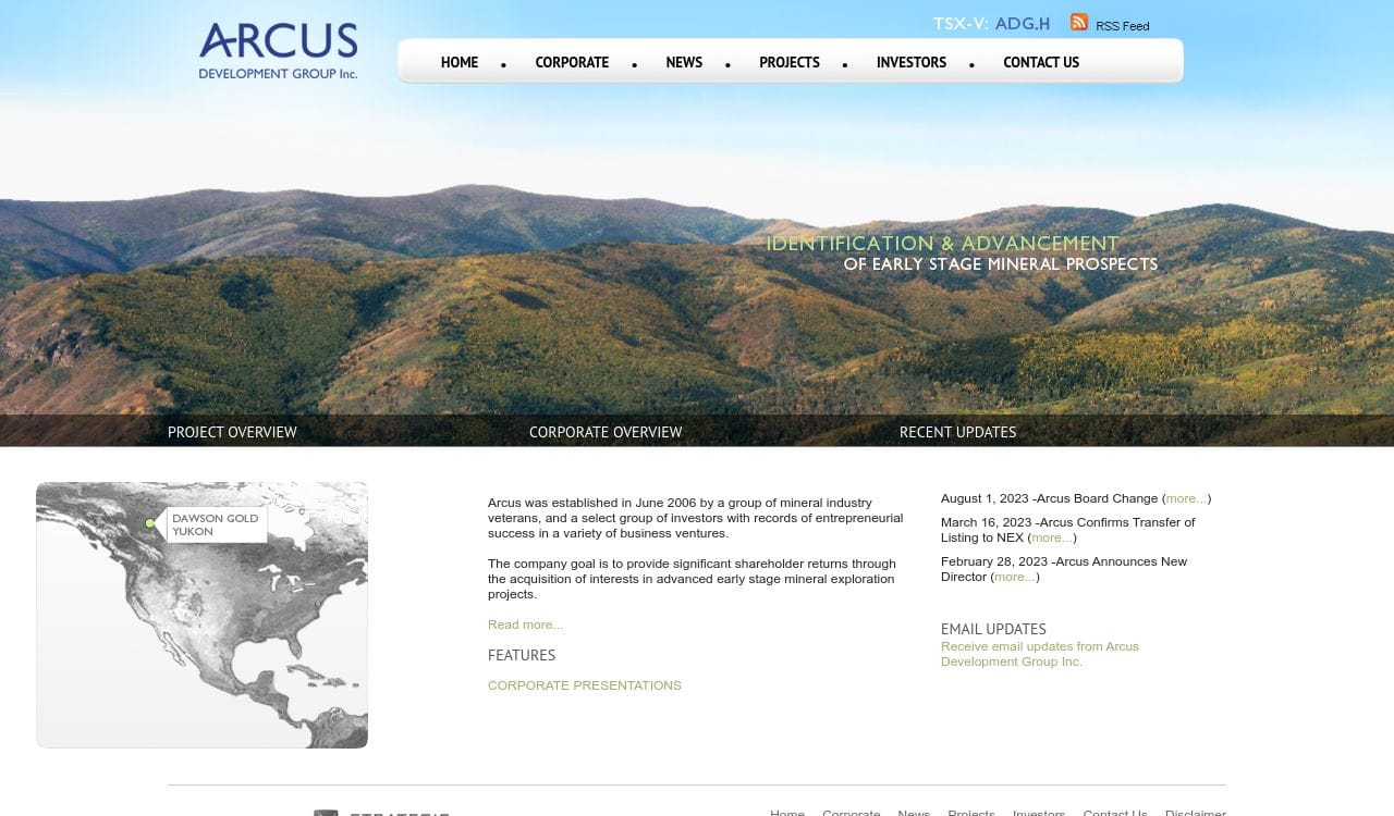 Arcus Development Group Inc. is a Canadian mineral exploration and development company that focuses on the exploration and development of gold and copper deposits in the Yukon Territory. The company was founded in 2005 and is headquartered in Vancouver, British Columbia. Arcus Development Group Inc. is listed on the TSX Venture Exchange under the symbol ADG. The company's flagship project is the Dawson Gold Project, which is located in the Dawson Range in the Yukon Territory. The Dawson Gold Project is a high-grade gold deposit that has the potential to become a significant gold producer. Arcus Development Group Inc. is committed to responsible and sustainable mining practices and works closely with local communities and stakeholders to ensure that its operations have a positive impact on the environment and the local economy.
