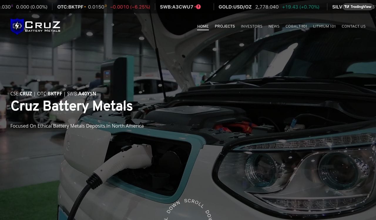 Cruz Battery Metals Corp is a Canadian mineral exploration company that focuses on acquiring and developing high-quality lithium, cobalt, and graphite projects in North America. The company's primary objective is to become a leading supplier of battery metals to the rapidly growing electric vehicle and energy storage markets. Cruz Battery Metals Corp has a portfolio of projects in Canada and the United States, including the Hector and War Eagle projects in Nevada, the Ontario Cobalt East project in Ontario, and the Bucke and Coleman projects in Ontario. The company is committed to responsible and sustainable exploration and development practices and aims to create long-term value for its shareholders.