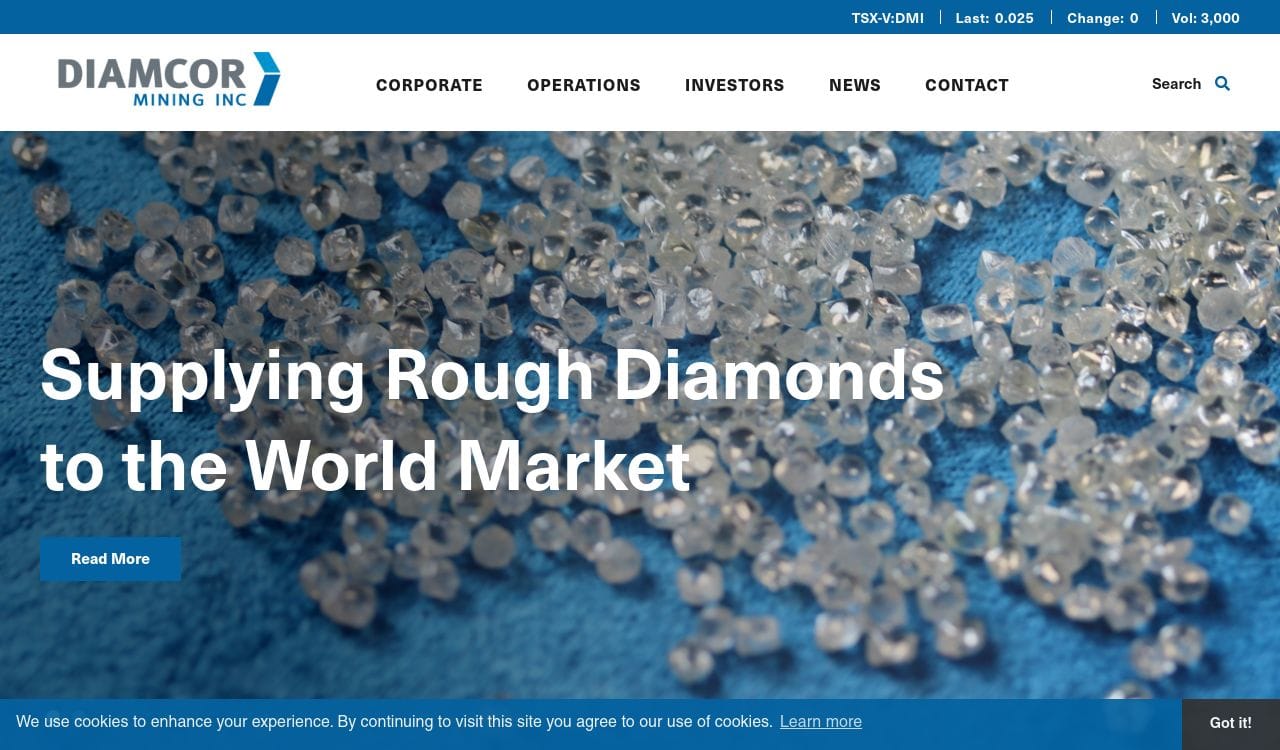 Diamcor Mining Inc. is a publicly traded Canadian company that is engaged in the exploration, development, and mining of diamond deposits in South Africa. The company's primary focus is on the Krone-Endora at Venetia project, which is located in the Limpopo Province of South Africa. Diamcor Mining Inc. uses advanced technologies and techniques to recover diamonds from the project, including X-ray transmission technology and grease table recovery methods. The company is committed to sustainable mining practices and has implemented various environmental and social initiatives to minimize its impact on the environment and local communities. Diamcor Mining Inc. is listed on the Toronto Stock Exchange under the symbol DMI.