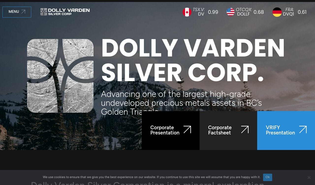 Dolly Varden Silver Corporation is a Canadian mineral exploration company that focuses on the exploration and development of silver properties in northwestern British Columbia. The company's flagship property is the Dolly Varden silver project, which is located in the Golden Triangle region of British Columbia. The project covers an area of approximately 8,800 hectares and is known for its high-grade silver mineralization. The company also has other exploration projects in the region, including the Big Bulk copper-gold project and the nearby Wolf property. Dolly Varden Silver Corporation is listed on the Toronto Stock Exchange under the symbol "DV".