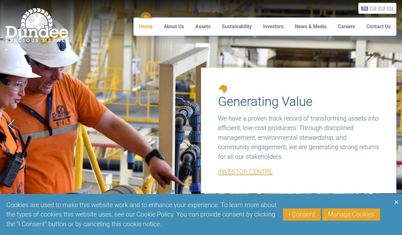 Dundee Precious Metals Inc. is a Canadian-based international mining company that specializes in the exploration, development, and production of precious metals. The company operates mines and processing facilities in Bulgaria, Armenia, and Canada, and has exploration projects in Serbia and Canada. Dundee Precious Metals produces gold, silver, and copper concentrates, and also operates a smelter and refinery in Bulgaria. The company is committed to sustainable mining practices and has implemented various environmental and social initiatives in the communities where it operates. Dundee Precious Metals is listed on the Toronto Stock Exchange and the Bulgarian Stock Exchange.