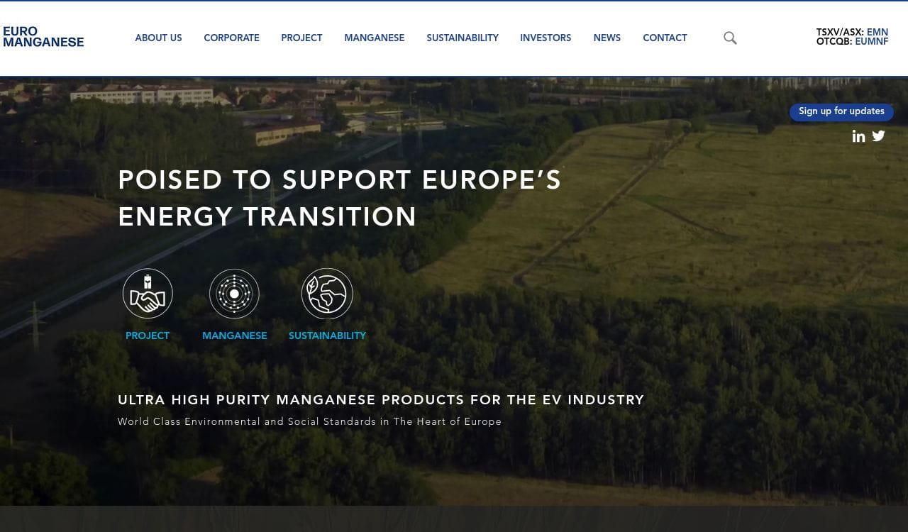 Euro Manganese is a battery materials company focused on becoming a leading producer of high-purity manganese for the electric vehicle industry.