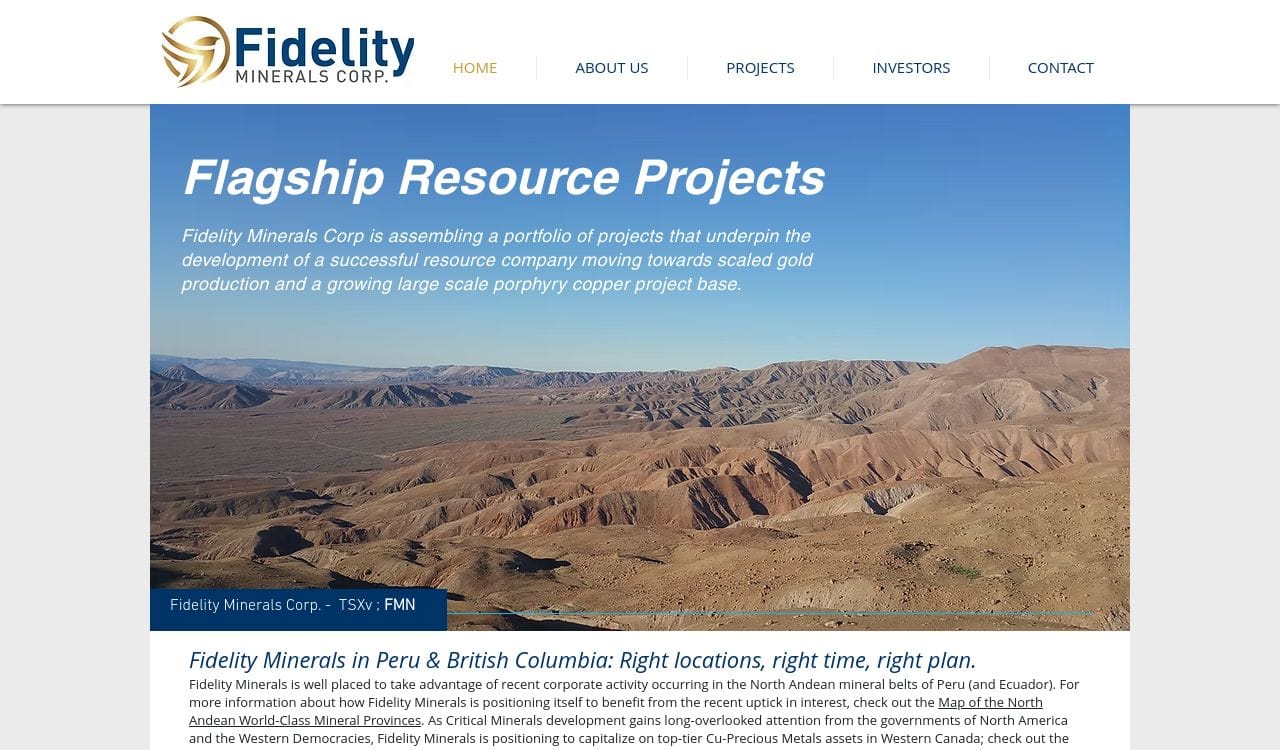 Fidelity Minerals Corp is a Canadian mineral exploration company that focuses on the acquisition, exploration, and development of precious and base metal properties in Peru. The company's primary focus is on gold and copper projects, with a portfolio of properties that includes the Las Brujas, Cerro Dorado, and Porphyritic Copper projects. Fidelity Minerals Corp is committed to responsible and sustainable mining practices, and works closely with local communities and stakeholders to ensure that its operations have a positive impact on the environment and the people who live in the areas where it operates. The company is listed on the TSX Venture Exchange under the symbol FMN.