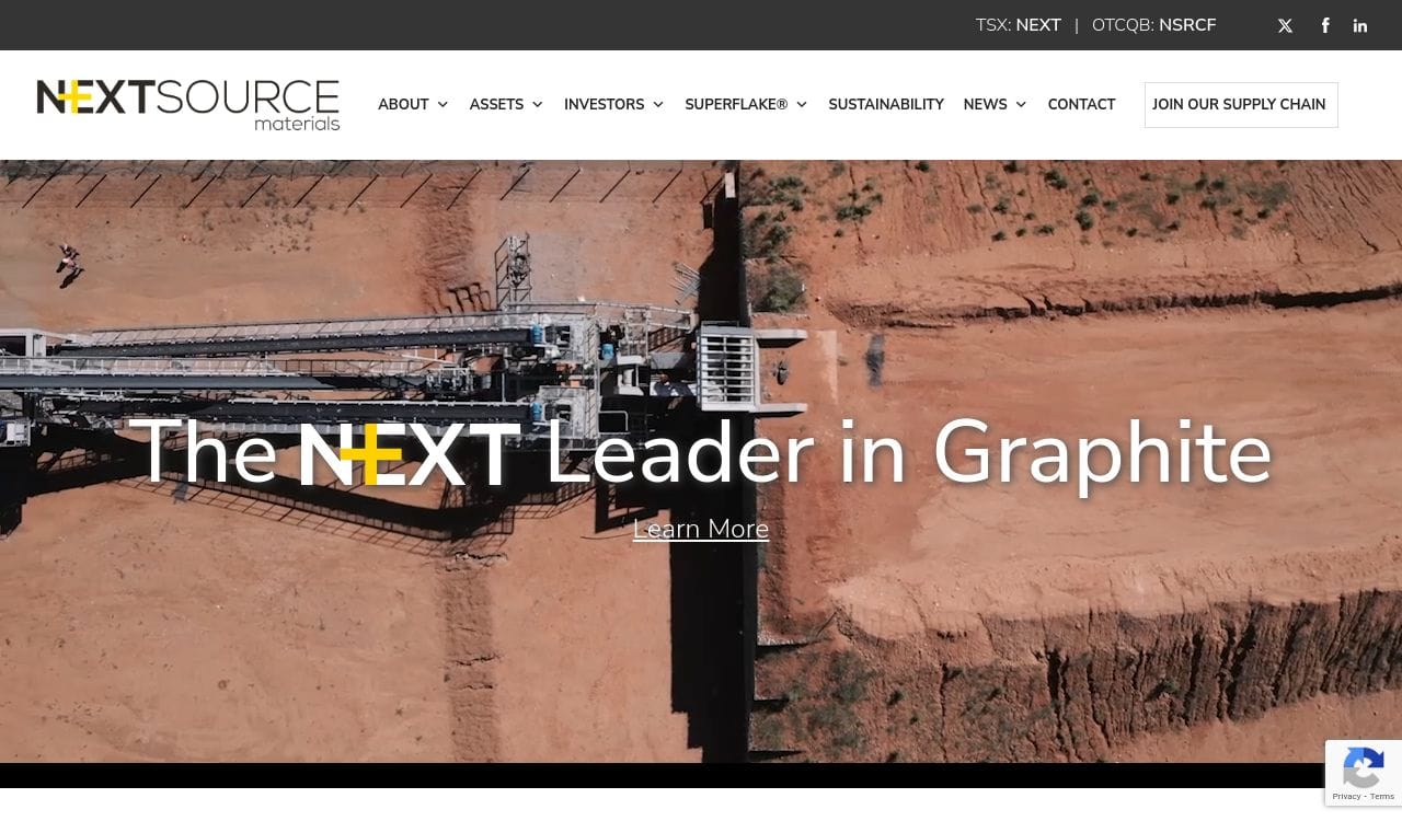 NextSource Materials Inc. is a Canadian-based mining company that specializes in the exploration and development of strategic metals and minerals. The company's primary focus is on the development of its Molo Graphite Project in Madagascar, which is one of the largest known graphite deposits in the world. The Molo Graphite Project is expected to produce high-quality graphite concentrate that can be used in a variety of applications, including lithium-ion batteries, fuel cells, and other high-tech products. NextSource Materials Inc. is committed to sustainable and responsible mining practices and has implemented various environmental and social initiatives to minimize its impact on the environment and local communities. The company is publicly traded on the Toronto Stock Exchange under the symbol NEXT.