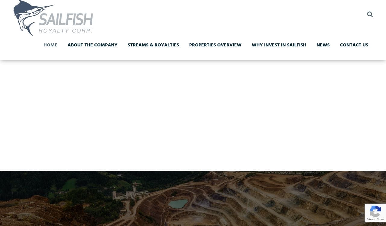 Sailfish Royalty Corp is a Canadian-based precious metals royalty and streaming company. The company's primary focus is on acquiring and managing precious metal royalties and streams, with a particular emphasis on silver. Sailfish's portfolio includes royalties and streams on several producing and development-stage mines in the Americas, including the San Albino gold project in Nicaragua and the Bralorne gold mine in British Columbia, Canada. The company's strategy is to generate cash flow from its royalty and streaming portfolio while maintaining a low-cost structure and a strong balance sheet. Sailfish is listed on the Toronto Stock Exchange under the symbol FISH.