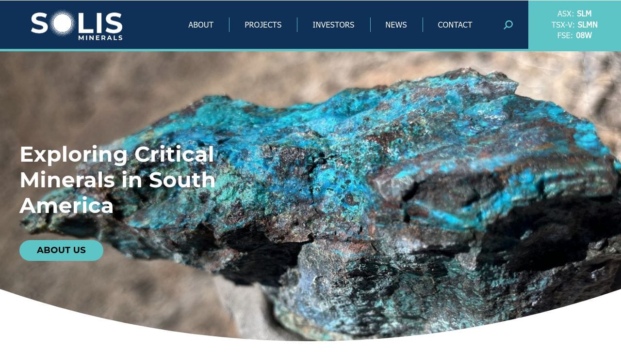 Solis Minerals Ltd is a mining company that specializes in the exploration and development of mineral resources. The company is focused on acquiring and developing high-quality mineral assets in Canada and other parts of the world. Solis Minerals Ltd is committed to responsible mining practices and sustainable development, and works closely with local communities and stakeholders to ensure that its operations have a positive impact on the environment and the people who live in the areas where it operates. The company's portfolio includes gold, silver, copper, and other precious and base metals, and it is constantly seeking new opportunities to expand its operations and grow its business.