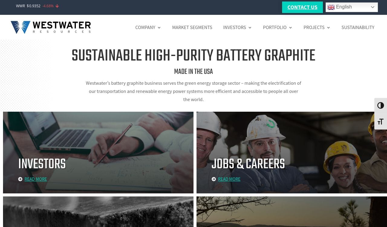 Westwater Resources Inc. is a US-based energy materials development company that is focused on the exploration and development of energy materials such as graphite, lithium, and uranium. The company's primary focus is on the development of its Coosa Graphite Project in Alabama, which is one of the largest graphite deposits in the United States. Westwater Resources also has a portfolio of uranium properties in New Mexico and Texas, as well as a lithium exploration project in Nevada. The company is committed to sustainable and responsible mining practices and is dedicated to minimizing its environmental impact. Westwater Resources is publicly traded on the NASDAQ under the ticker symbol WWR.