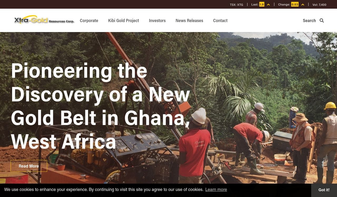 Xtra-Gold Resources Corp is a Canadian-based gold exploration company that focuses on the acquisition, exploration, and development of gold properties in Ghana, West Africa. The company's flagship property is the Kibi Gold Project, which covers an area of approximately 226 square kilometers and is located in the Kibi-Winneba greenstone belt. Xtra-Gold Resources Corp also holds interests in other gold exploration properties in Ghana, including the Akyem North and East projects. The company's goal is to discover and develop high-grade gold deposits in Ghana, which is a stable and mining-friendly jurisdiction with a long history of gold production.