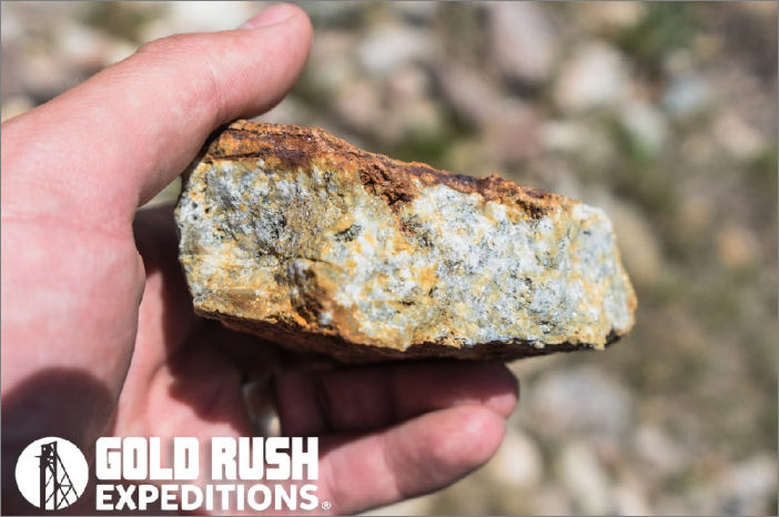 Gold Rush Expeditions, Inc. surveyors found good values of gold and silver on the surface of the mines but there were no open portals to examine the work underground.