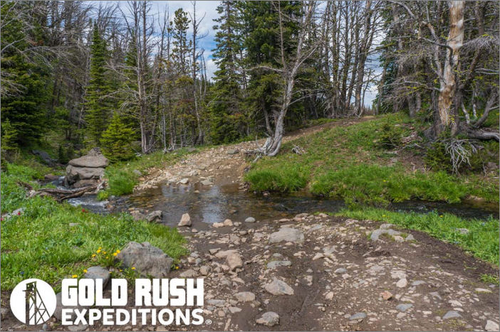 The claim spans over the majority of the interesting stream beds, part of McKelvey lake, and the stream and falls below the lake, where gold has been historically mined. The black sand and flake gold can be followed the length of the stream to where it fades out past the New Deal Mine.