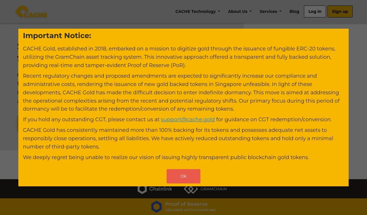 Cache.gold is a digital platform that specializes in precious metals, particularly gold, facilitating secure and efficient transactions for buying, selling, and storing physical gold. By leveraging advanced technology, Cache.gold aims to provide transparency and ease of access to gold investments for both individual investors and institutions. The platform emphasizes security, offering features such as insured storage solutions and blockchain-based tracking to ensure the authenticity and provenance of the gold being traded.