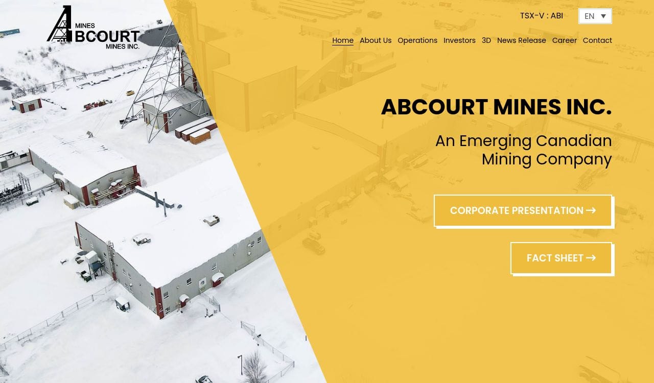 Abcourt Mines is listed on the Toronto Stock Exchange under the symbol ABI. The company has a market capitalization of approximately CAD 25 million as of August 2021.