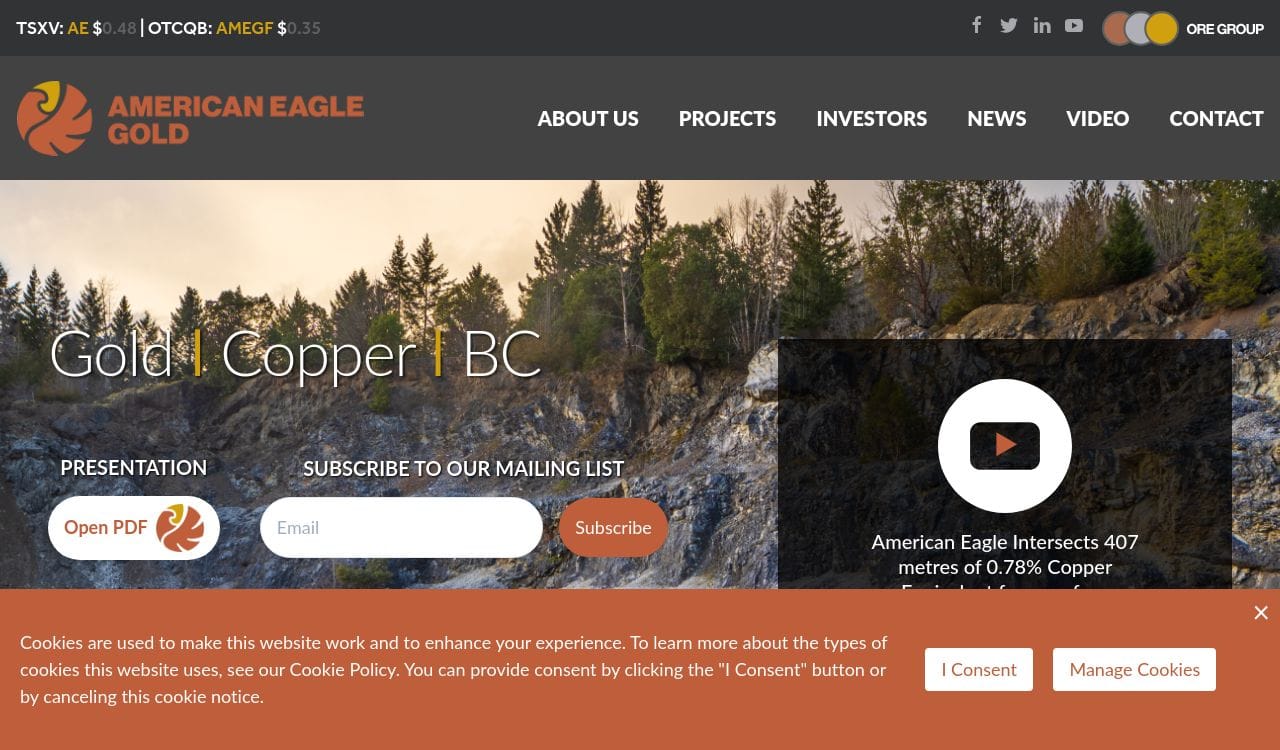 The company's management team has extensive experience in the mining industry and is committed to creating value for shareholders through the exploration and development of high-quality gold properties. American Eagle Gold Corp is listed on the Canadian Securities Exchange (CSE) under the ticker symbol AE and on the Frankfurt Stock Exchange under the symbol A9JA.