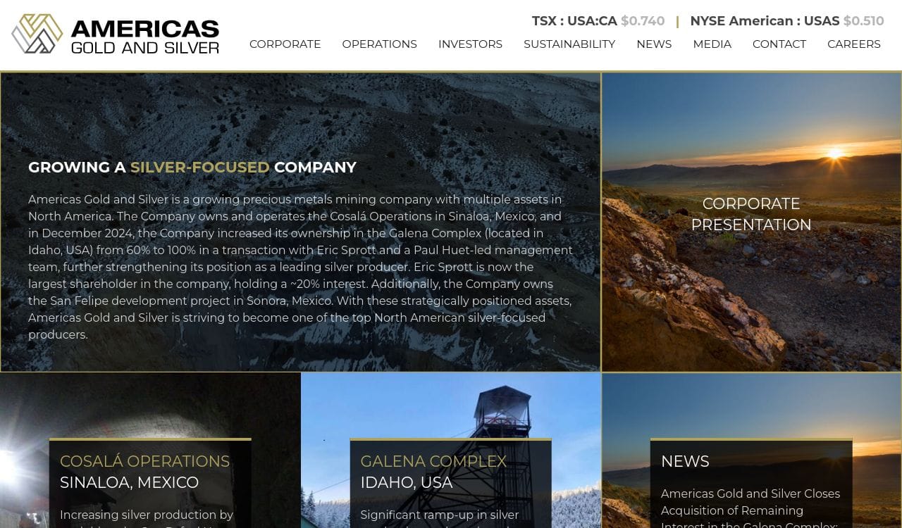 Americas Gold and Silver, Cosalá mining district, Sinaloa, Mexico, Galena Complex, Coeur d'Alene Mining District, Shoshone County, Idaho