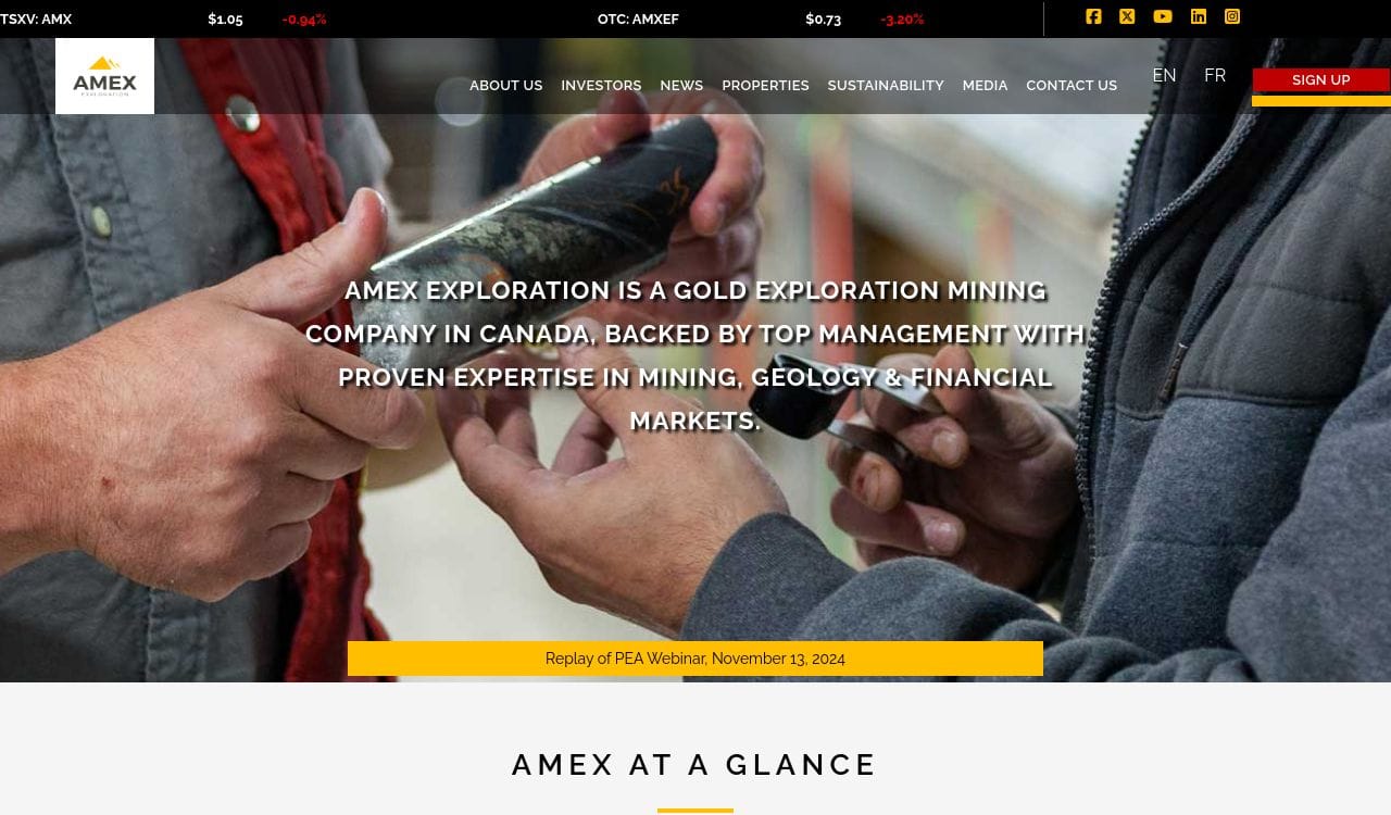 Amex Exploration Inc. is a Canadian mineral exploration company that is focused on the exploration and development of gold deposits in Quebec, Canada. The company's flagship project is the Perron Gold Project, which is located in the Abitibi region of Quebec. The Perron Gold Project covers an area of approximately 110 square kilometers and is located in a highly prospective area for gold mineralization. Amex Exploration is led by a team of experienced mining professionals and is committed to responsible and sustainable mining practices. The company's shares are listed on the Toronto Stock Exchange under the symbol AMX.