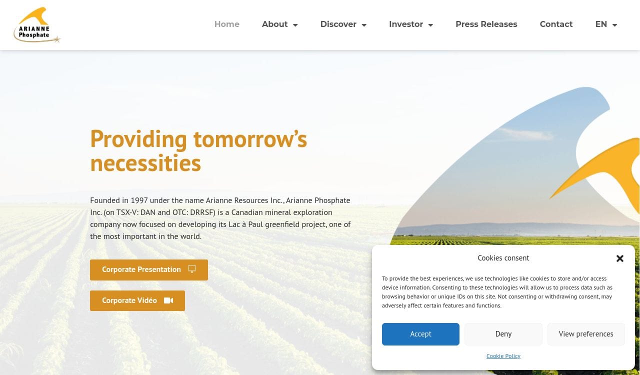 Inc., Arianne Phosphate Inc. (on TSX-V: DAN and OTC: DRRSF) is a Canadian