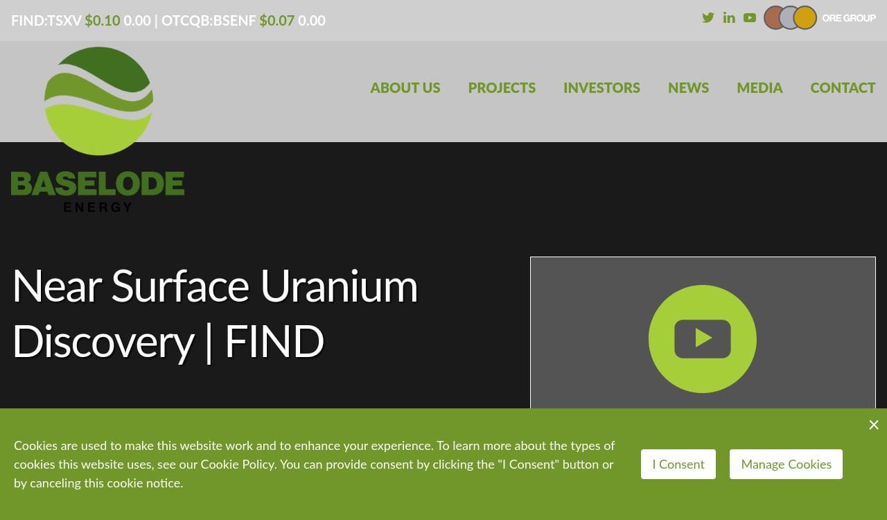 Baselode Energy Corp is a Canadian mineral exploration company that focuses on the discovery and development of high-quality uranium deposits in the Athabasca Basin of Saskatchewan. The company was founded in 2018 and is headquartered in Vancouver, British Columbia.