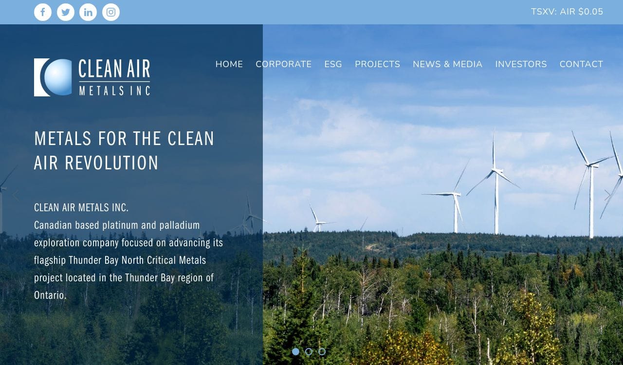 Clean Air Metals Inc. is a Canadian mineral exploration company that is focused on the exploration and development of platinum group metals (PGM) and nickel-copper deposits in Canada. The company's flagship project is the Thunder Bay North project, which is located in the Thunder Bay Mining District of Ontario. The project is a joint venture between Clean Air Metals and Impala Platinum Holdings Limited, a leading producer of PGMs. The Thunder Bay North project has a resource estimate of 1.9 million ounces of palladium equivalent and is considered one of the largest undeveloped PGM deposits in North America. Clean Air Metals is committed to responsible and sustainable mining practices and is dedicated to minimizing its environmental impact.