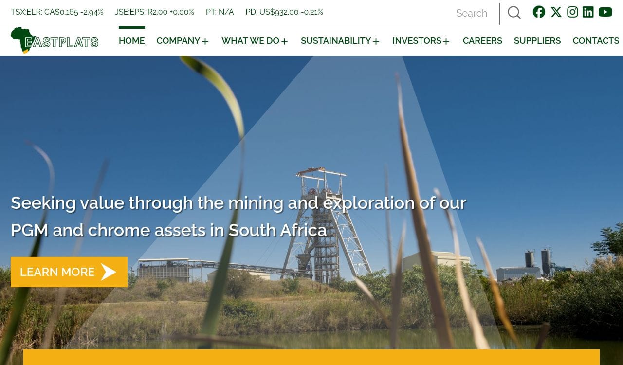Eastern Platinum Limited (Eastplats) is a Canadian-based platinum group metals (PGM) producer with operations in South Africa. The company's competitive edge lies in its unique asset base, which includes the Crocodile River Mine (CRM) and the Mareesburg Project.