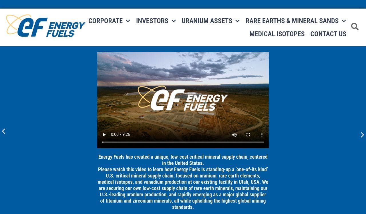 Energy Fuels is a fully-integrated producer of both uranium and vanadium, and owner of the only operational conventional uranium mining in the United States.