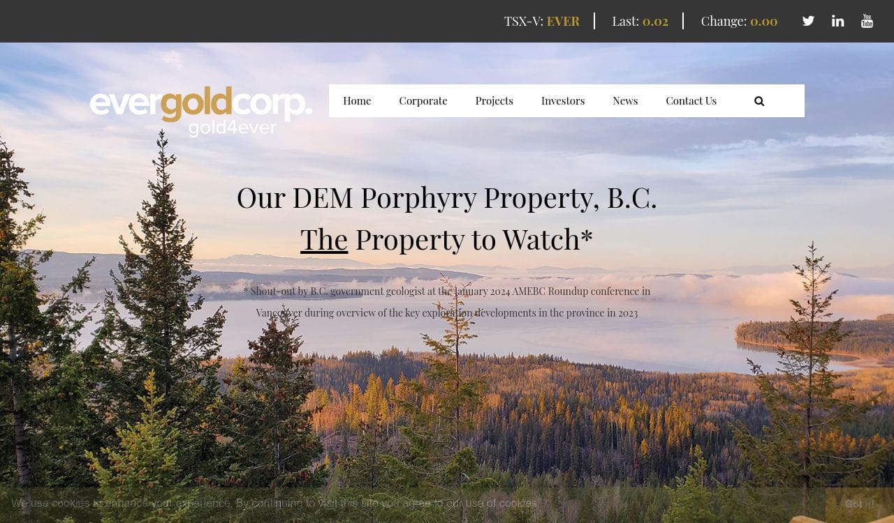 Evergold Corp. However, based on publicly available information, Evergold Corp is a mineral exploration company that focuses on exploring and developing gold and copper properties in British Columbia, Canada.