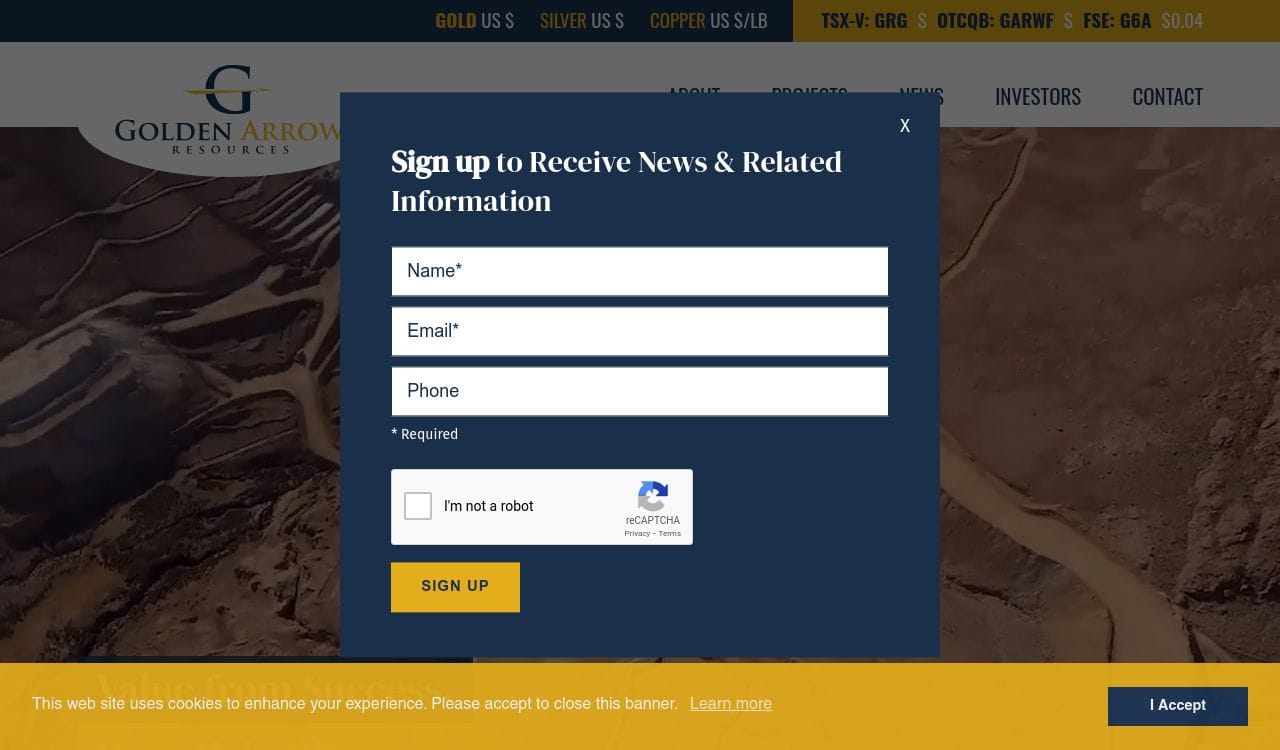 5. Limited track record: Golden Arrow Resources Corporation is a relatively young company with a limited track record of success compared to its more established peers. This could make it more difficult for the company to attract investors and secure financing for future projects.