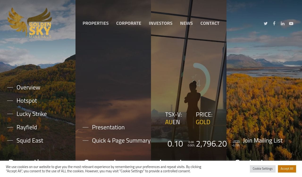 3. Lack of Diversification: Golden Sky Minerals Corp is primarily focused on the exploration and development of gold and silver properties, which may limit its ability to diversify its revenue streams and mitigate risks associated with fluctuations in commodity prices.