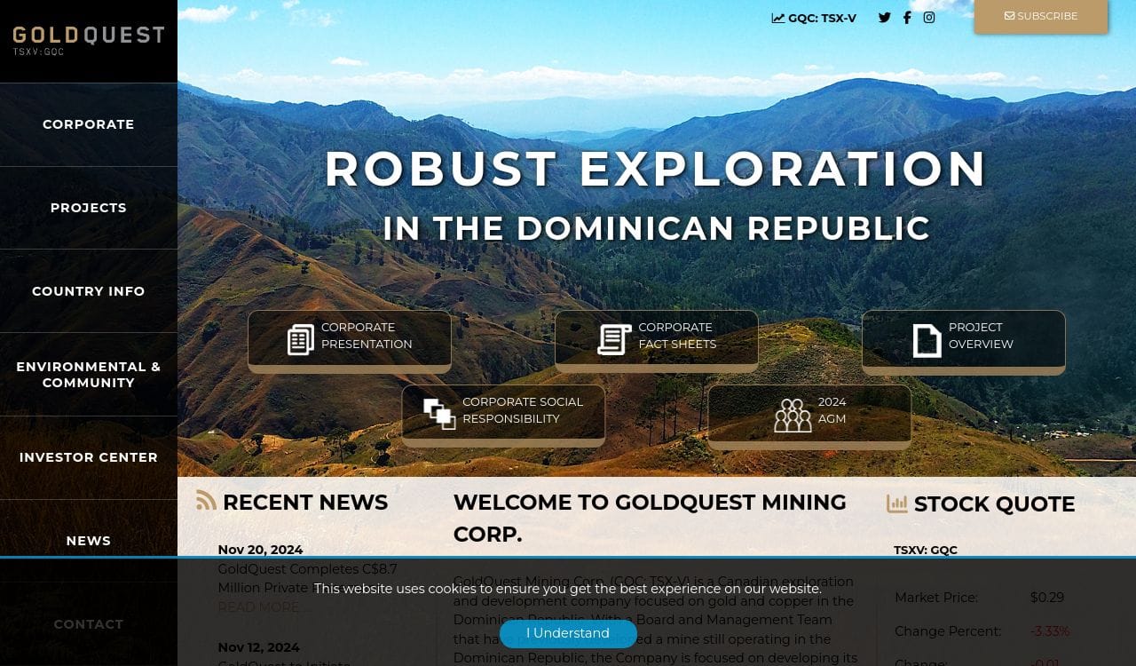 GoldQuest Corporation is a mineral exploration company focused on gold and copper exploration in the Dominican Republic.