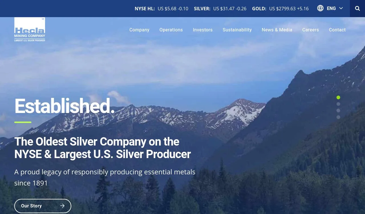 Hecla Mining, Mining, Precious Metals, Silver, Gold, Lead, Zinc, Exploration, Development, Production, Environment, Safety, Sustainability, Investors, Shareholders, News, Events, Careers.