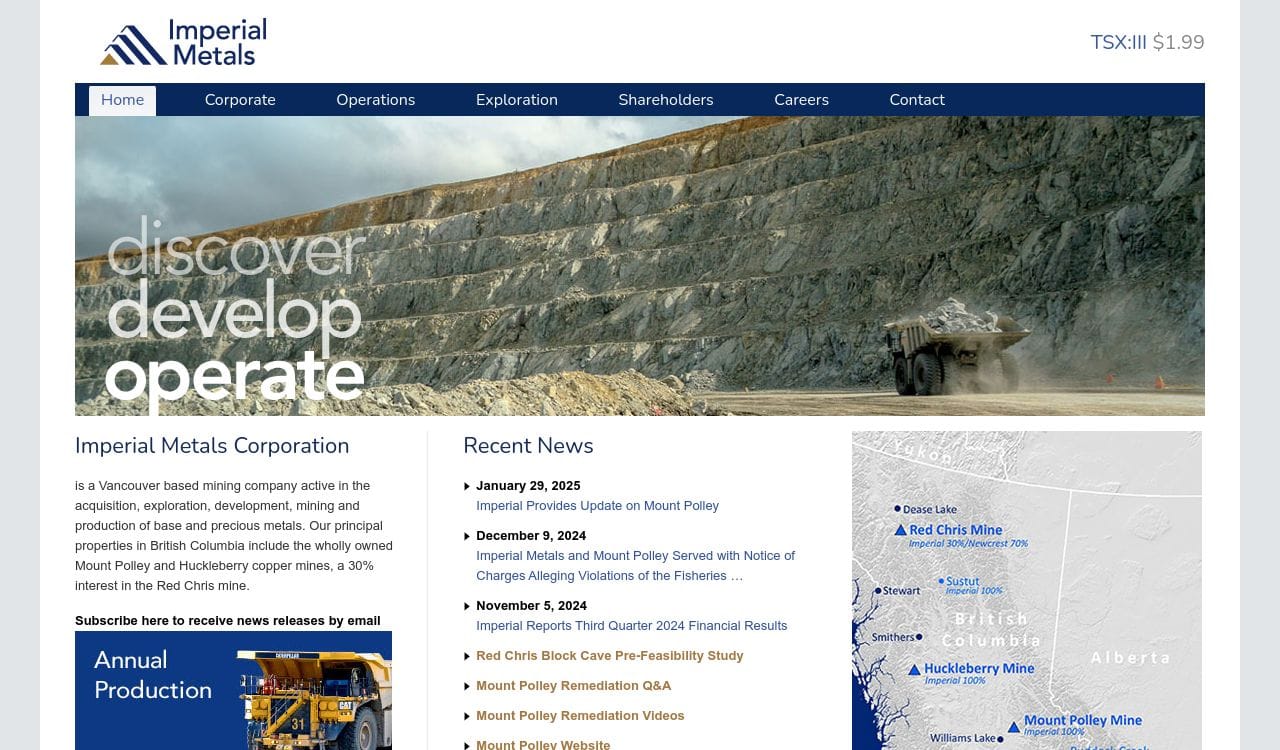 Imperial Metals is listed on the Toronto Stock Exchange under the symbol III.